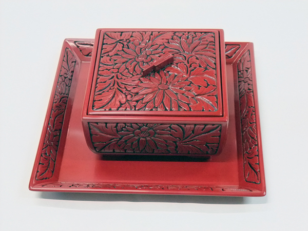 堆朱角菓子器(盆付) |