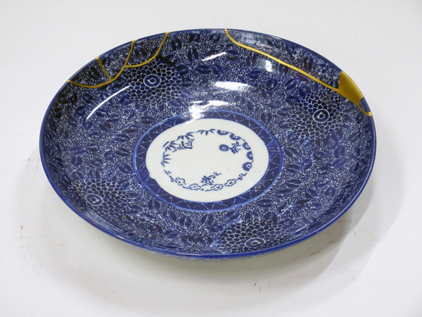 金継ぎを施した染付皿 |
