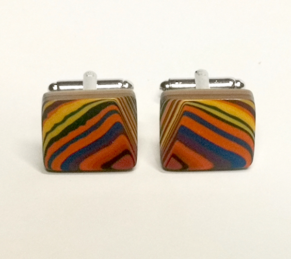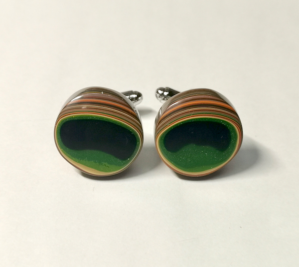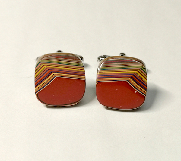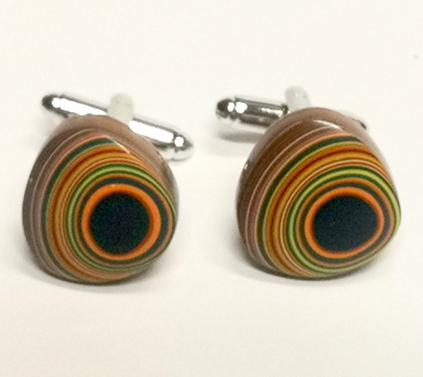堆漆(ついしつ=色漆を300回以上も塗り重ね、厚く積み重なった漆の層を研ぎ出して、さまざまな模様を出す伝統技法)でつくったカフスです。現在の在庫は、下の6個です。