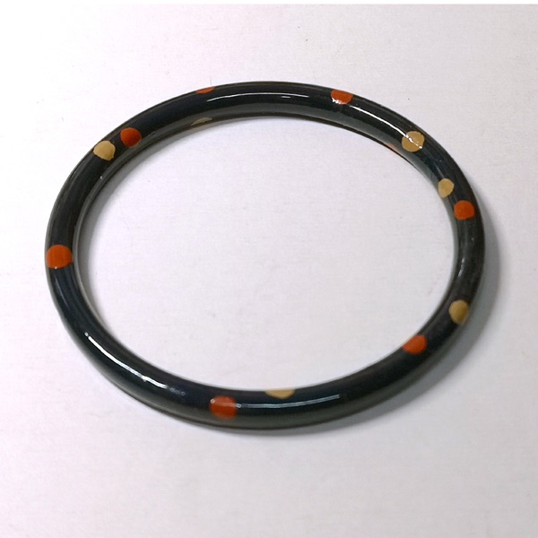 アクリルの素地に黒漆を塗り、色漆で加飾をしたブレスレットです。在庫数はそれぞれ1個ずつ、現品のみです。