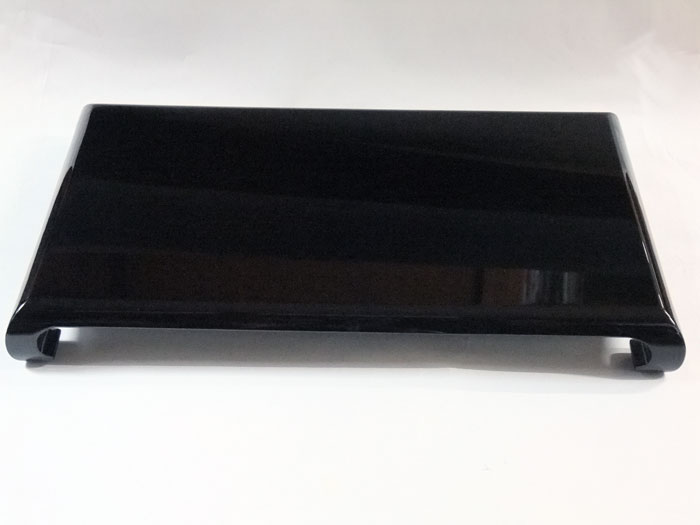 シンプルな黒漆塗りの花台です。上に乗せる花器や香炉、置物などをぐっと引き立て、グレードの高いものに見せます。この製品は桐箱入りです。