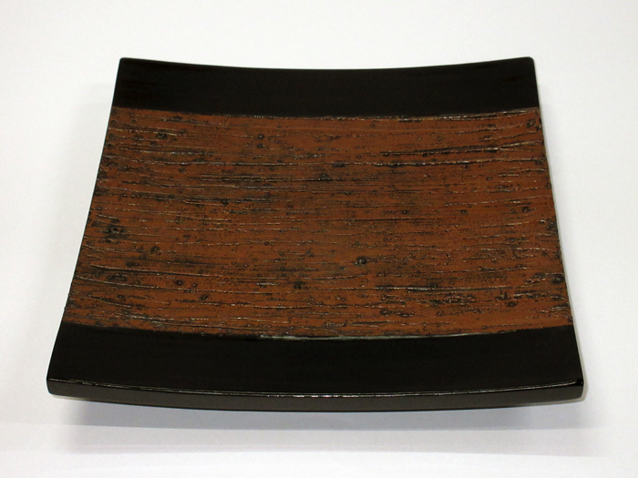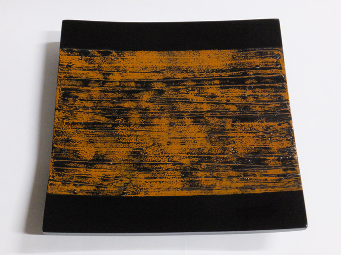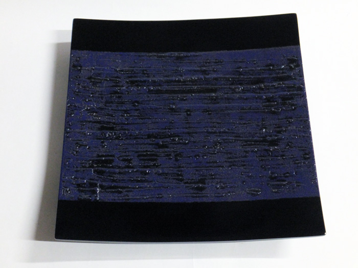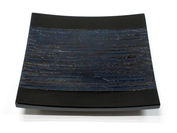 艶のある黒漆の地に、波模様の凹凸をつけ、落ち着いた色彩を施した盛り器です。穏やかな春の海の「さざ波」をイメージしてデザインしてみました。お料理、デザートなど、何を盛っても、食材が美しく引き立ち、モダンで個性的なテーブル・コーディネイトが楽しめる一品です