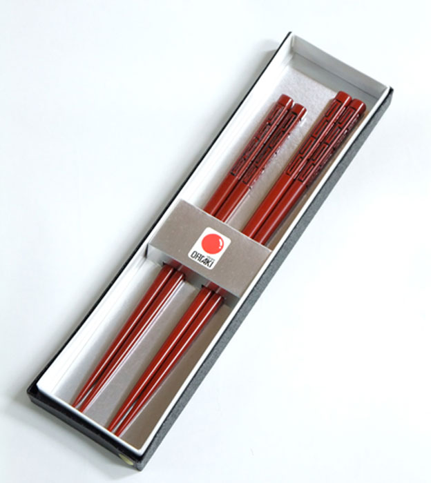 長短2膳の堆朱はしを組み合わせた、ご進物用の箱入りセットです。